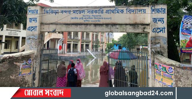 সি রাজগঞ্জের উল্লাপাড়ার প্রাণকেন্দ্রে অবস্থিত ঝিকিড়া বন্দর মডেল সরকারি প্রাথমিক বিদ্যালয় নামেই মডেল, বাস্তবে এর চিত্র সম্পূর্ণ ভিন্ন। টানা কয়েকদিনের ভারী বর্ষণে বিদ্যালয়ের পুরো প্রাঙ্গণ জলমগ্ন হয়ে পড়েছে। স্কুলের মাঠ জমে আছে হাঁটু সমান নোংরা পানি। ফলে বিদ্যালয়টি এখন যেন একটি স্কুল নয়, বরং ছোট্ট একটি পুকুরে পরিণত হয়েছে।
