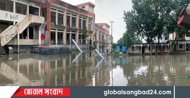 সি রাজগঞ্জের উল্লাপাড়ার প্রাণকেন্দ্রে অবস্থিত ঝিকিড়া বন্দর মডেল সরকারি প্রাথমিক বিদ্যালয় নামেই মডেল, বাস্তবে এর চিত্র সম্পূর্ণ ভিন্ন। টানা কয়েকদিনের ভারী বর্ষণে বিদ্যালয়ের পুরো প্রাঙ্গণ জলমগ্ন হয়ে পড়েছে। স্কুলের মাঠ জমে আছে হাঁটু সমান নোংরা পানি। ফলে বিদ্যালয়টি এখন যেন একটি স্কুল নয়, বরং ছোট্ট একটি পুকুরে পরিণত হয়েছে।