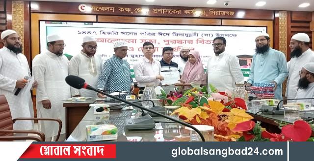 নিবার ০৬ সেপ্টেম্বর ২০২৫, সিরাজগঞ্জ জেলা প্রশাসক সম্মেলন কক্ষে ইসলামিক ফাউন্ডেশন এর উদ্যোগে পবিত্র ঈদে মিলাদুন্নবী (সা:) উপলক্ষে আলোচনা সভা, দোয়া মাহফিল ও পুরস্কার বিতরণী অনুষ্ঠান অনুষ্ঠিত হয়েছে । সভাপতি তো করেন অতিরিক্ত জেলা প্রশাসক (সার্বিক) জনাব গনপতি রায় ।