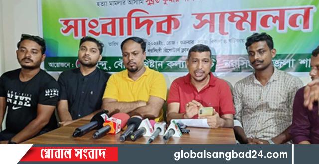 ন রসিংদীতে জেলা পূজা উৎযাপন কমিটির সাধারণ সম্পাদক সুব্রত কুমার সাহার ফেসবুক পোস্টে সাম্প্রদায়িক উস্কানিমূলক লেখার প্রতিবাদে নরসিংদী রিপোর্টার্স ক্লাবের হল রুমে সাংবাদিক সম্মেলনের আয়োজন করেছে হিন্দু খ্রিস্টান বৌদ্ধ কল্যাণ ট্রাস্ট।