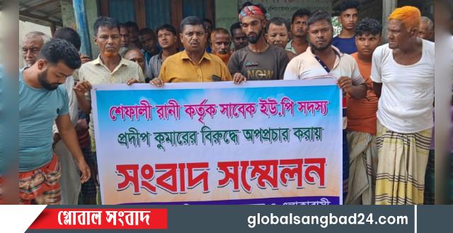 সংবাদ সম্মেলনে প্রদীপ কুমার বলেন শেফালী রানী দীর্ঘদিন যাবত এলাকায় অনৈতিক কার্যক্রম করে আসছিল, আমি তাকে বাধা প্রদান করায় সে আমার বিরুদ্ধে যৌন হয়রানির অভিযোগ এনে থানায় একটি অভিযোগ দায়ের করেছে যাহা সম্পূর্ণ মিথ্যা ও বানোয়াট আমি এর তীব্র নিন্দা ও প্রতিবাদ জানাচ্ছি।