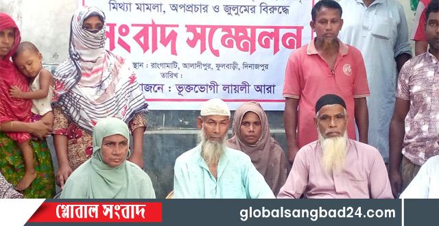 দি নাজপুর জেলার ফুলবাড়ী উপজেলার ২-নং আলাদীপুর ইউনিয়নের উত্তর রঘুনাথপুর গ্রামে বসতবাড়ির চলাচলের একমাত্র উপযোগী রাস্তা বন্ধ করে নিজ মামার করা পরপর মিথ্যা মামলার হয়রানির প্রতিবাদে ভুক্তভোগী পরিবারের সংবাদ সম্মেলন। বৃহস্পতিবার ১৬ অক্টোবর দুপুর সাড়ে ১২ টায় উপজেলার ২নং আলাদীপুর ইউনিয়নের রাঙামাটি গ্রামের নিজ বাড়িতে ভুক্তভোগী লায়লী আরা ও তাঁর পরিবার এ সংবাদ সম্মেলন করেন।