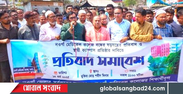 আজ ১৫ই মার্চ রোজ শনিবার বেলা সাড়ে এগারো টায় শহরের মুক্তির মোড়ে নওগাঁ মেডিকেল কলেজ বন্ধের সিদ্ধান্তের প্রতিবাদে বিক্ষোভ সমাবেশ করেছেন শিক্ষার্থী ও স্থানীয়রা। শহরের মুক্তির মোড়ে ‘বিভিন্ন সংগঠনের নেতৃত্বেবৃন্দ জেলার সর্বস্তরের জনগণ ও মেডিকেল কলেজের শিক্ষার্থী ব্যানারে ঘণ্টা-ব্যাপী এ বিক্ষোভ পালিত হয়।
