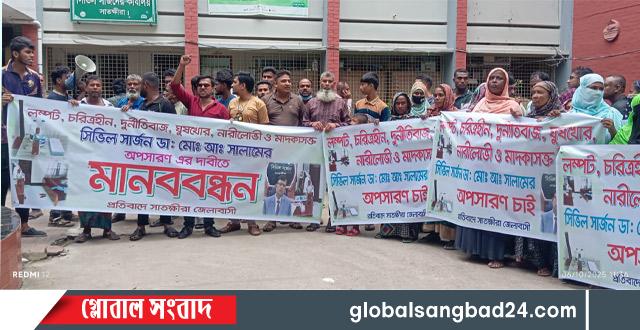 সাতক্ষীরার সিভিল সার্জনের অপসারণের দাবিতে বিক্ষোভ-মানববন্ধন ও অফিস ঘেরাও