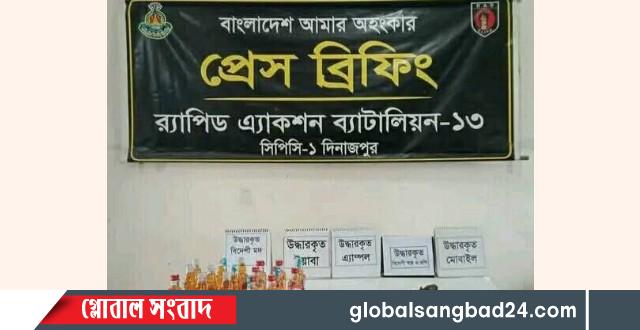 ১৯ জুলাই শনিবার সন্ধ্যা সাড়ে ৭ টায় সদর উপজেলার ১০ নং কমলপুর ইউনিয়নের দক্ষিণ দাইনুর কঞ্জকুড়ি গ্রামের মোঃ আনোয়ার হোসেনের ছেলে সাগর বাবুর বাড়ীতে দিনাজপুর র্যাব ১৩ এর একটি চৌকস দল গোপন সংবাদের ভিত্তিতে অভিযান পরিচালনা করে শয়ন কক্ষের ভেতর থেকে ৫ রাউন্ড তাজা গুলি সহ একটি বিদেশী রিভলবার ও বিপুল পরিমাণ মাদকদ্রব্য উদ্ধার করে।