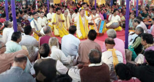 উল্লাপাড়া হিন্দু বৌদ্ধ খ্রীষ্টান ঐক্য পরিষদের সভাপতি প্রভাত নন্দী এর আগে উদ্বোধক অতুল সরকারকে গোপাল জিউ মন্দিরের রুপার চাবি,