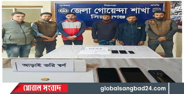 এ সময় তাদের কাছ থেকে আড়াই ভরি গলিত সোনা, ০৩ টি মোবাইল ফোন, ০১ টি এলইডি টিভি, ০১ টি ডিসকভার মোটরসাইকেল উদ্ধার করা হয়।