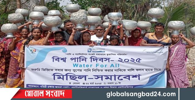 নিরাপদ পানির সার্বজনীন, ন্যায্যতা ও সহজলভ্যতা নিশ্চিত করতে ২০২৫-২৬ অর্থবছরে বাজেটে বিশেষ বরাদ্দ দিতে হবে। সমবেশের আগে পশুর নদীর পাড়ে খালি কলস হাতে নিয়ে উপকূলীয় নারীরা মিছিল করেন।