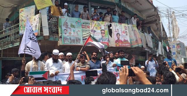 ফি লিস্তিনের গাজায় ইসরায়েলি বাহিনীর নির্বিচার গণহত্যার প্রতিবাদে সোমবার (৭ এপ্রিল) পাংশায় ছাত্র-জনতার বিক্ষোভ মিছিল ও সমাবেশ অনুষ্ঠিত হয়েছে।