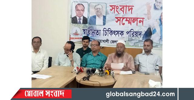 নোয়াখালীতে ২৫০ শয্যা জেনারেল হাসপাতাল অভিমুখে একটি বিক্ষোভ সমাবেশে অশালীন বক্তব্যের নিন্দা জানিয়ে সংবাদ সম্মেলন করেছেন স্বাধীনতা চিকিৎসক পরিষদ (স্বাচিপ) নোয়াখালীর আহবায়ক কমিটি।