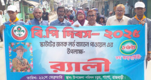 ॥ পাংশা (রাজবাড়ী) প্রতিনিধি ॥ রাজবাড়ী জেলার পাংশা উপজেলা স্কাউটস্’র উদ্যোগে শনিবার (২২শে ফেব্রুয়ারী) স্কাউটের জনক লর্ড ব্যাডেন পাওয়েলের ১৬৮তম জন্মবার্ষিকী উপলক্ষে বি.পি. দিবস-২০২৫ পালিত হয়েছে। এ উপলক্ষে বর্ণাঢ্য র্যালীর আয়োজন করা হয়। জানা যায়, শনিবার সকাল ১০টায় পাংশা উপজেলা পরিষদ চত্বর থেকে বাদ্যযন্ত্র ও ব্যানার সহকারে র্যালী বের করা …