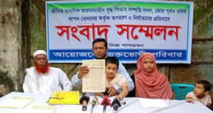 ॥ শাহ আলম, সিরাজগঞ্জ জেলা প্রতিনিধি ॥ সি রাজগঞ্জের উল্লাপাড়ার অ্যাডভোকেট মোঃ আব্দুল হামিদ (৮০) মানসিক ভারসাম্যহীন ও অসুস্থ অবস্থায় অনিচ্ছায় জোরপূর্বক সম্পত্তি দখলের উদ্দেশ্যে দলিল তৈরি, অপহরণ ও শারীরিক-মানসিক নির্যাতনের অভিযোগ উঠেছে তারই মেয়েদের বিরুদ্ধে। সংবাদ সম্মেলনে টি.এম. নুর এজাজ এ ঘটনায় অপহরণ, অবৈধ আটক, নির্যাতন এবং জমি আত্মসাতের …