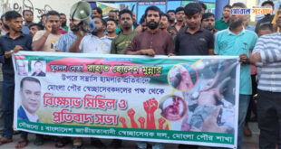 ॥ মাসুদ রানা, বাগেরহাট জেলা প্রতিনিধি ॥ মোং লায় প্রকাশ্যে দিবালোকে যুবদল নেতা রাহাত হাসান মুন্নাকে হত্যার উদ্যেশ্যে নৃশংস হামলার প্রতিবাদে বিক্ষোভ মিছিল ও প্রতিবাদ সভা করেছে মোংলা পৌর স্বেচ্ছাসেবকদল। বৃহস্পতিবার (১২ জুন) বিকাল ৫টায় পৌর শহরের বিভিন্ন সড়ক প্রদক্ষিণ করে পৌর মার্কেট চত্বরে এসে প্রতিবাদ সমাবেশ করেন দলটির নেতাকর্মীরা। …