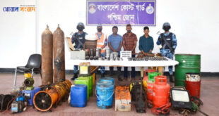 ॥ মাসুদ রানা, বাগেরহাট  জেলা প্রতিনিধি ॥ মোং লা বন্দরে অবস্থানরত একটি বাংলাদেশি বাণিজ্যিক জাহাজ থেকে চুরি করা মালামালসহ তিন চোরাকারবারিকে আটকৃ করেছে কোস্টগার্ড পশ্চিম জোন। এঘটনায় আরো যারা জড়িত তাদের বিরুদ্ধে কোস্টগার্ডের অভিযান চলমান রয়েছে।   এটি একটি পূর্বপরিকল্পিত সাজানো ডাকাতির ঘটনা। যেখানে জাহাজের চিফ ইঞ্জিনিয়ারসহ অন্যান্য নাবিক বৃন্দ …