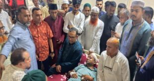 আ.লীগের হামলার শিকার বিএনপি নেতার শয্যা পাশে ব্যারিস্টার সায়েম