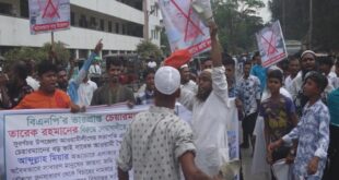 ক্লাস-পরীক্ষা বর্জন করে নোয়াখালী কৃষি প্রশিক্ষণ ইনস্টিটিউট শিক্ষার্থীদের অবস্থান কর্মসূচি