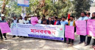 হাতিয়ায় বাংলাদেশ বিক্রয় প্রতিনিধি জোটের উদ্যোগে মানববন্ধন।