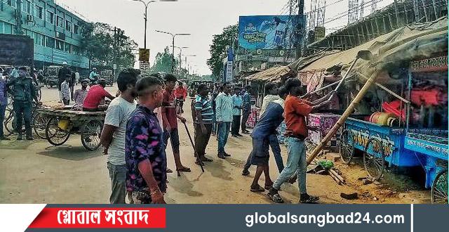 দিনাজপুরের ফুলবাড়ীতে মহাসড়কের দু’পাশে অবৈধ স্থাপনা উচ্ছেদ অভিযানে প্রশাসন।