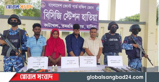 নো য়াখালীর হাতিয়া উপজেলার বুড়ির চর ইউনিয়নের দুর্গম এলাকায় সোমবার( ৩০ জুন )রাতে কোস্টগার্ড ও পুলিশ যৌথ অভিযান চালিয়ে ৩ ডাকাত ও এক স্বর্ণ ব্যবসায়ীকে আটক করেছে। এ সময় তাদের কাছ থেকে পাঁচটি আগ্নেয়াস্ত্র ও ২০ ভরি স্বর্ণালংকার এবং বিভিন্ন সরঞ্জামাদি উদ্ধার করা হয়েছে ।