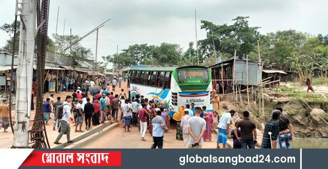 রা জবাড়ীর দৌলতদিয়া ৭ নাম্বার ফেরি ঘাটে দুইটি মোটরসাইকেল যাত্রীবাহী বাসের চাকার নিচে। অল্পতে রক্ষা পেলো বাসের ৪০ জন যাত্রী