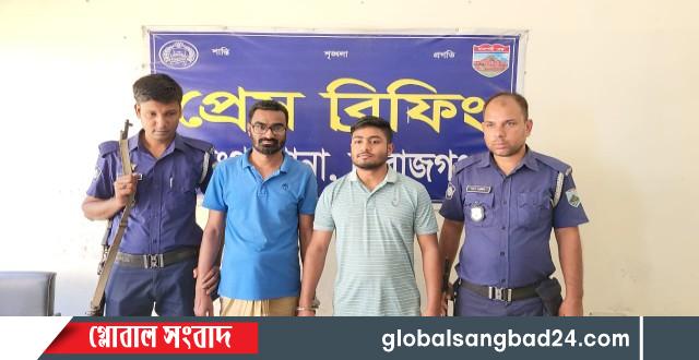 আটককৃত আসামী, সলংগা থানার শ্রীরামের পাড়া গ্রামে আমজাদ আলীর ছেলে এরশাদুল ইসলাম(৩৫) ও আবু তালেব ছেলে আবু সুফিয়ান(২৫)।