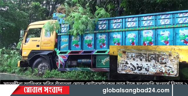 এ সময় আহত হন আরো তিনজন পথচারী। নিহতরা হলেন সাতক্ষীরা সদরের আলিপুর বাজার খোলা এলাকার খলিলুর রহমানের ছেলে শরিফুল ইসলাম (৩০) ও একই এলাকার নুর আলী সরদারের ছেলে আব্দুল হান্নান (৪০)। এলাকাবাসী ও প্রত্যক্ষদর্শীরা জানান, দুপুরে ভোমরা স্থলবন্দরে যাওয়ার পথে বেপরোয়া গতিতে একটি খালি ট্রাক ওপরদিক থেকে আসা একটি মোটরসাইকেলের মুখোমুখি সংঘর্ষে হয়।