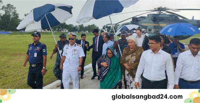জেলা প্রশাসকের পক্ষ থেকে জানানো হয়, রোববার দুপুর ১টা ৫মিনিটে প্রথমে ঢাকা থেকে বিমান বাহিনীর ৪১১নং হেলিকপ্টর যোগে মোংলা বন্দর সংলগ্ন নৌবাহিনীর দ্বিগরাজ ঘাটিতে এসে পৌছায়।
